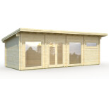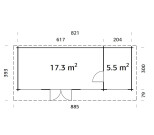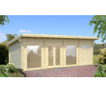 Päädyssä on erillinen huone. Sopii esimerkiksi makuuhuoneeksi. Asiakkaamme ovat myös rakentaneet saunan makuuhuoneen tilalle. Seinävahvuus on 70 mm ja nurkissa käytetään alppimaja-nurkkaliitosta joka takaa hyvän liitoksen.