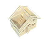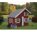 Denna lekstuga med loft är många barns favorit! Lekstugan är högre än de andra modellerna och rymligare också för fullvuxna gäster. Lekstugan levereras som byggsats med väggar i element utan ytbehandling. Fönstren är i slagtåligt plexiglas. Lekstugan är CE-märkt.
