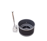 Den utvändiga kaminen i marinaluminium är dimensionerad för att snabbt värma upp badvattnet även i sträng kyla. Som tillbehör finns ett plastlock som håller för både snö och klättrande barn. Locket är vanligen på under uppvärmningen vilket ytterligare förkortar uppvärmningstiden.