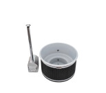 Den utvändiga kaminen i marinaluminium är dimensionerad för att snabbt värma upp badvattnet även i sträng kyla. Som tillbehör finns plastlock som håller för både snö och klättrande barn. Locket är vanligen på under uppvärmningen vilket ytterligare förkortar uppvärmningstiden.