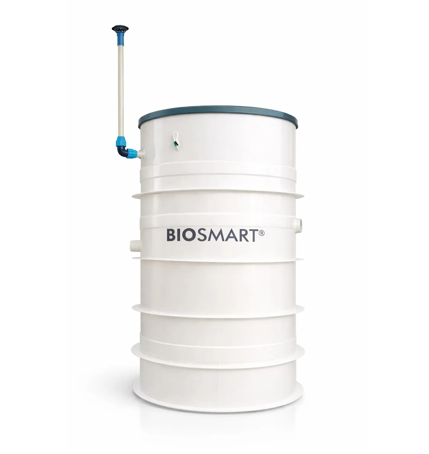 BIOSMART® pienpuhdistamo on sinulle, joka asut kunnallisen jäteverkoston ulkopuolella. Pienpuhdistamo soveltuu omakotitaloihin ja mökeille. Jätevesipuhdistamo hoitaa kotitalouden jäteveden: vessa-, kylpy-, tiski-ja pesuvedet. Puhdistus tapahtuu bioloogisesti ilman kemikaaleja. Pienpuhdistamon asentaminen on helppoa kompaktin koon ansiosta. Säiliössä ei ole liikkuvia osia, mikä takaa korkean toimintavarmuuden. Puhdistus on hajutonta ja siinä on edulliset käyttökustannukset. Tulevaisuuden pienpuhdistamo BIOSMART® on yksi Euroopan johtavista valmistajista. Pienpuhdistamo on CE-merkitty ja täyttää EN12566-3