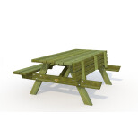Pöytätaso ja penkit ovat valmiita elementteja. Vastaanottajan tarvitsee vain kiinnittää pöydän jalat.